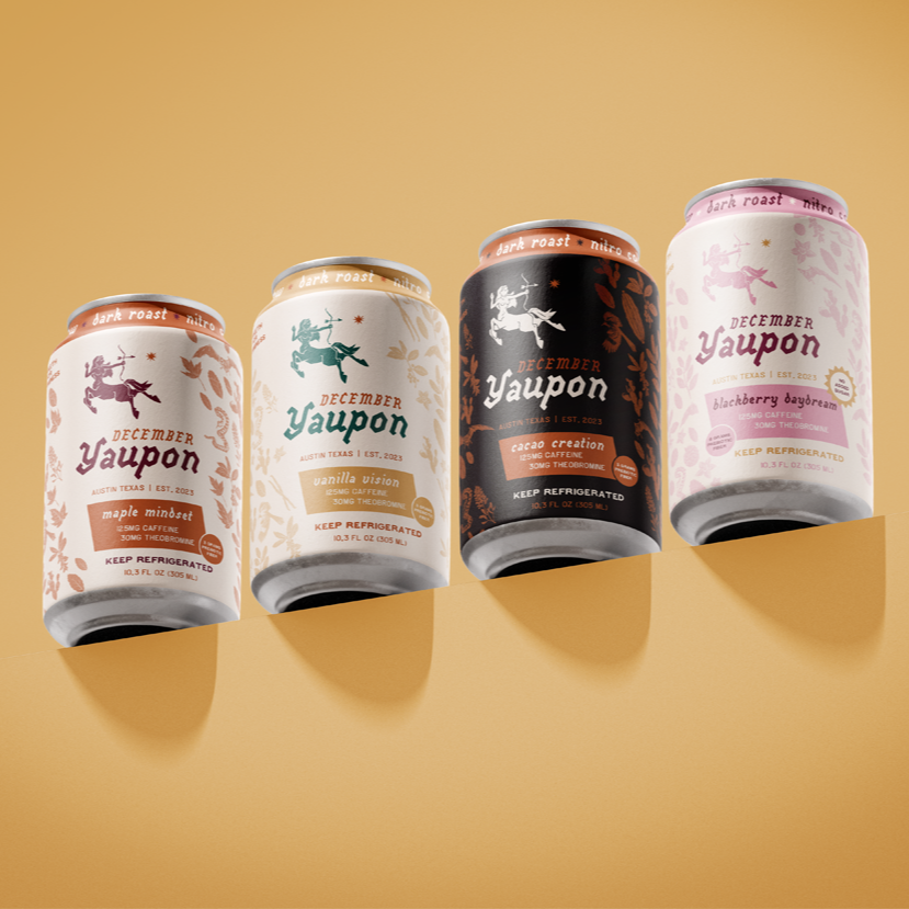 December Yaupon is an Austin based nitro cold brew sustainable tea company. I worked with them from the very beginning to create the logo, website, print collateral, merch, and package design.